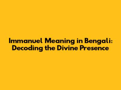 Immanuel Meaning In Bengali: Decoding The Divine Presence