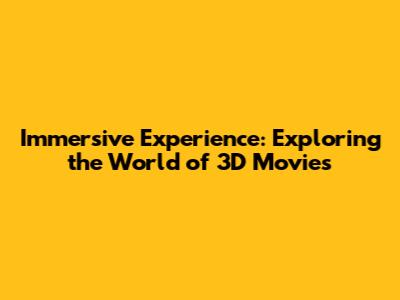 Immersive Experience: Exploring The World Of 3D Movies