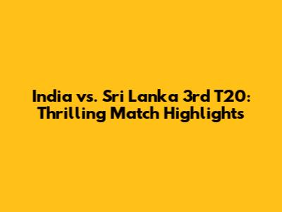 Hey sports fanatics! Let's dive headfirst into the India vs. Sri Lanka 3rd T20 match highlights. This match was a rollercoaster of emotions, showcasing some amazing cricket. If you missed it, no worries, I've got you covered with a detailed recap. We'll break down the key moments, star performances, and the overall game dynamics. So, grab your snacks, settle in, and let's relive the excitement together! This was more than just a game; it was a battle of skill, strategy, and sheer determination. Both teams came prepared to give their best, making this encounter a treat for any cricket enthusiast. We’ll analyze everything from the opening overs to the nail-biting finish, ensuring you don’t miss a single detail. Get ready to be transported back to the stadium, feeling the energy and passion that filled the air. This match had it all – incredible catches, powerful shots, and strategic masterstrokes that kept everyone on the edge of their seats. The intensity of the competition was palpable, as both India and Sri Lanka fought tooth and nail for every run and every wicket. The atmosphere was electric, with fans cheering their teams on, creating an unforgettable experience. So, buckle up; it’s going to be an exciting ride through the highlights!