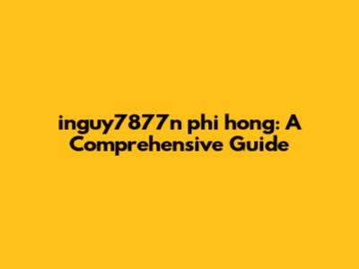Inguy7877n Phi Hong: A Comprehensive Guide