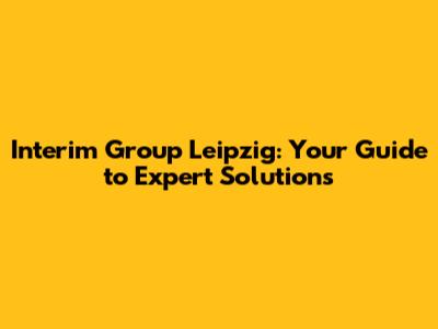 Interim Group Leipzig: Your Guide To Expert Solutions