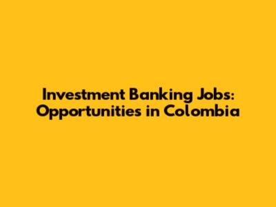 Investment Banking Jobs: Opportunities In Colombia