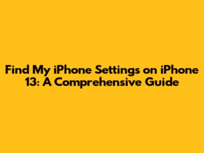 IPhone 13: Find My IPhone Settings Guide