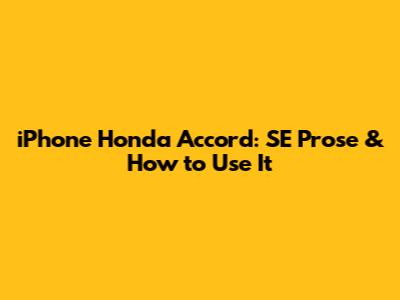 IPhone Honda Accord: SE Prose & How To Use It