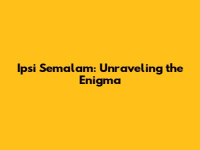 Ipsi Semalam: A Deep Dive Into The Mysterious Phenomenon