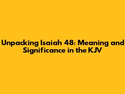 Hey guys! Today, we're diving deep into Isaiah 48, specifically looking at its meaning as presented in the King James Version (KJV). This chapter is an absolute powerhouse, packed with divine pronouncements and profound truths about God's sovereignty, His relationship with Israel, and His ultimate plan for redemption. It's a message that resonates across centuries, reminding us of God's unchanging nature and His unwavering commitment to His people, even when they falter. So, grab your Bibles, settle in, and let's unpack this incredible chapter together. We'll be exploring the context, the key themes, and the lasting implications of Isaiah 48, especially for those who cherish the KJV translation.