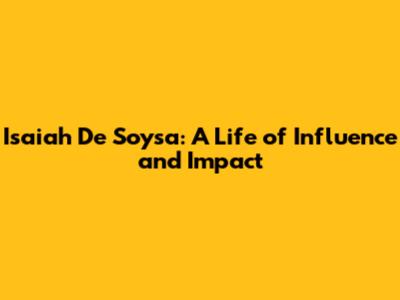 Isaiah De Soysa: A Life Of Influence And Impact
