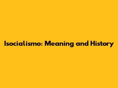 Isocialismo: Meaning And History