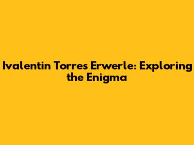 Ivalentin Torres Erwerle: Exploring The Enigma