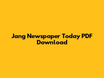 Jang Newspaper Today: Download PDF Edition