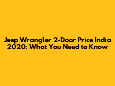 Jeep Wrangler 2-Door Price India 2020: What You Need To Know