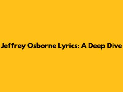Jeffrey Osborne Lyrics: A Deep Dive