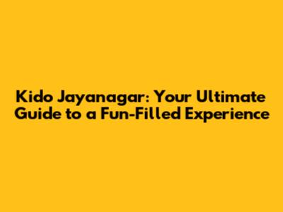 Kido Jayanagar: Your Ultimate Guide