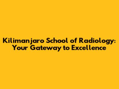 Kilimanjaro School Of Radiology: Your Gateway To Excellence