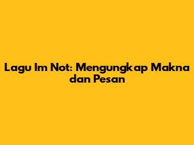 Lagu 'I'm Not': Mengungkap Makna Dan Pesan