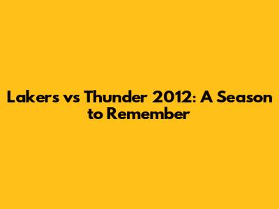 Lakers Vs Thunder 2012: A Season To Remember