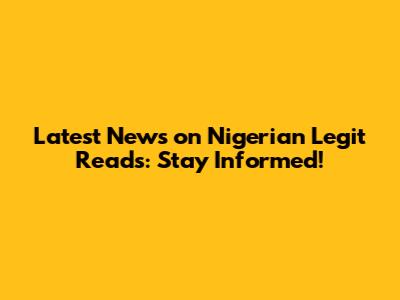 Latest News On Nigerian Legit Reads: Stay Informed!
