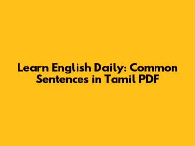 Learn English Daily: Common Sentences In Tamil PDF