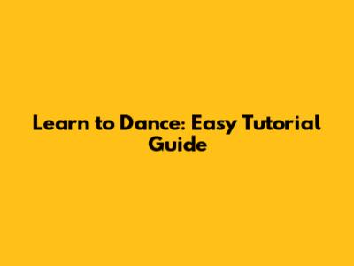 Learn To Dance: Easy Tutorial Guide