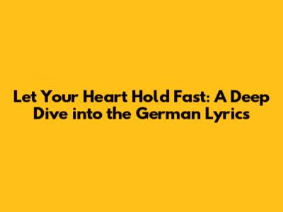 Hey everyone! Today, we're diving deep into a song that has touched many hearts, and we're going to explore its German lyrics. You know, sometimes a song just hits differently when you understand every single word, especially when it’s in a language you might be more familiar with, or perhaps one you're learning. We're talking about "Let Your Heart Hold Fast", and understanding its translation and meaning in German can unlock a whole new level of appreciation for the artistry involved. So grab your favorite beverage, get comfy, and let’s break down these powerful German lyrics together. We’ll look at the original English and then see how it translates, exploring the nuances and the emotional weight carried by each line. It’s not just about translating words; it’s about capturing the essence and the feeling behind them, and that’s what makes this journey so exciting, guys. Get ready to connect with the song on a deeper level than ever before!