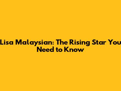 Lisa Malaysian: The Rising Star You Need To Know