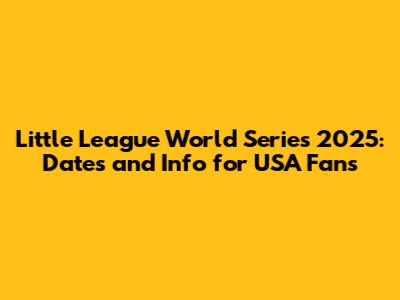 Little League World Series 2025: Dates And Info For USA Fans