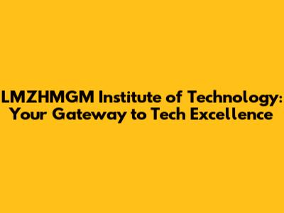 LMZHMGM Institute Of Technology: Your Gateway To Tech Excellence
