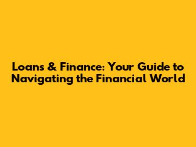 Loans & Finance: Your Guide To Navigating The Financial World