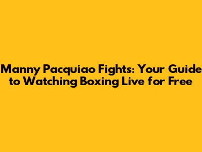 Manny Pacquiao Fights: How To Watch Boxing Live For Free