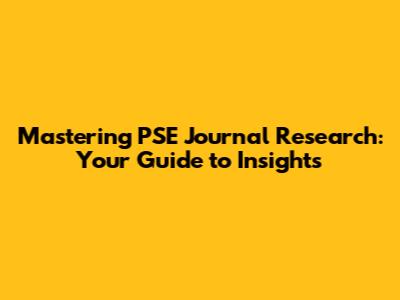 Mastering PSE Journal Research: Your Guide To Insights