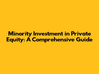 Minority Investment In Private Equity: A Comprehensive Guide