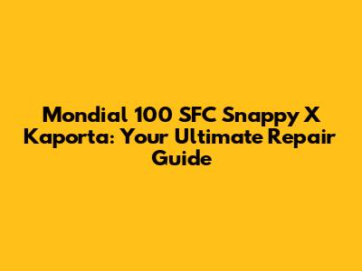 Understanding Your Mondial 100 SFC Snappy X Kaporta