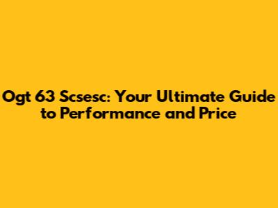 Ogt 63 Scsesc: Performance, Price, And More!