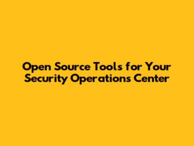 Open Source Tools For Your Security Operations Center