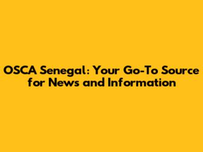 OSCA Senegal: News, Information & Updates