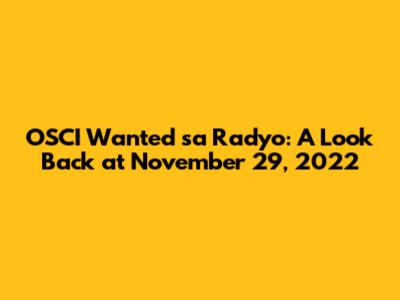 OSCI Wanted sa Radyo: A Look Back at November 29, 2022
