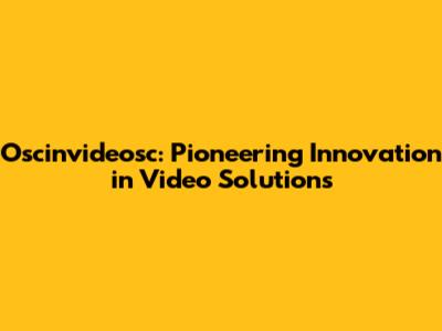Oscinvideosc: Pioneering Innovation In Video Solutions