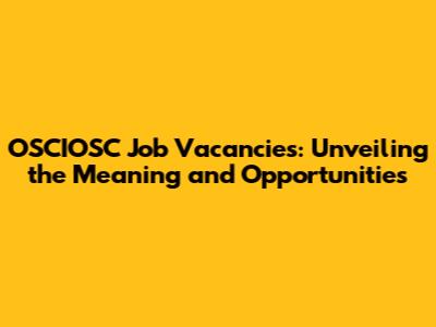 OSCIOSC Job Vacancies: Understanding The Meaning