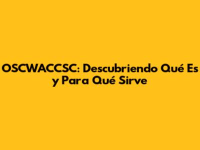 OSCWACCSC: Qué Es, Usos Y Beneficios Explicados
