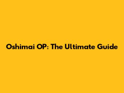 Oshimai OP: The Ultimate Guide