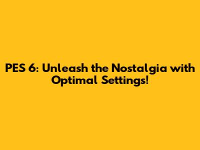 PES 6: Best Settings & Configurations Guide