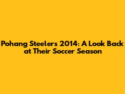 What's up, soccer fans! Today, we're going to dive deep into the 2014 season of the Pohang Steelers, a team with a rich history and a passionate fanbase. The Steelers, hailing from Pohang, South Korea, have always been a force to be reckoned with in the K League Classic. In 2014, they were looking to build on their previous successes and make a strong statement in both domestic and international competitions. This season was a mix of exhilarating victories, nail-biting draws, and, of course, some tough losses that tested the team's resilience. We'll be exploring their key players, their tactical approaches, memorable matches, and how they ultimately finished the year. So, grab your favorite team scarf, settle in, and let's relive the Pohang Steelers' 2014 soccer journey together! It was a year that showcased their fighting spirit and their commitment to the beautiful game.