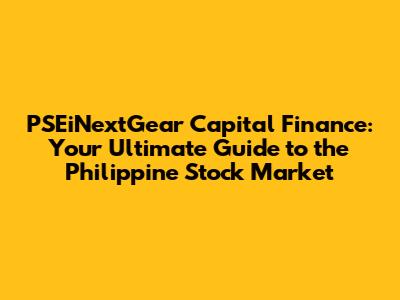 PSEiNextGear Capital Finance: Your Guide To Philippine Stock Market