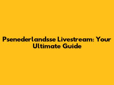 Psenederlandsse Livestream: The Ultimate Guide