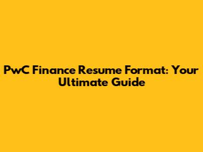 PwC Finance Resume Format: Your Guide