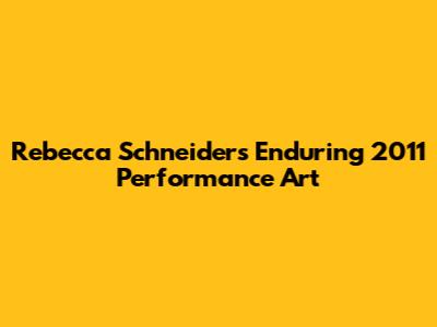 Rebecca Schneider's Enduring 2011 Performance Art