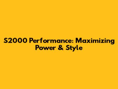 S2000 Performance: Maximizing Power & Style