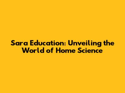 Sara Education: Exploring Home Science