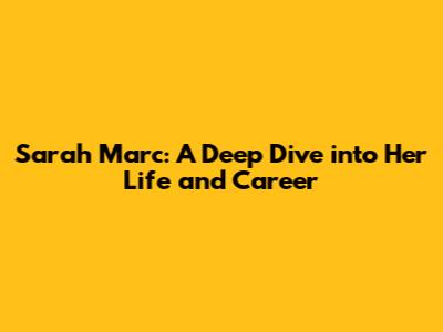 Sarah Marc: A Deep Dive Into Her Life And Career