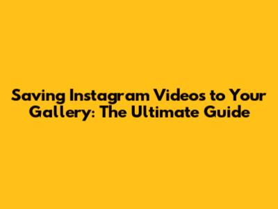 Saving Instagram Videos To Your Gallery: A Complete Guide